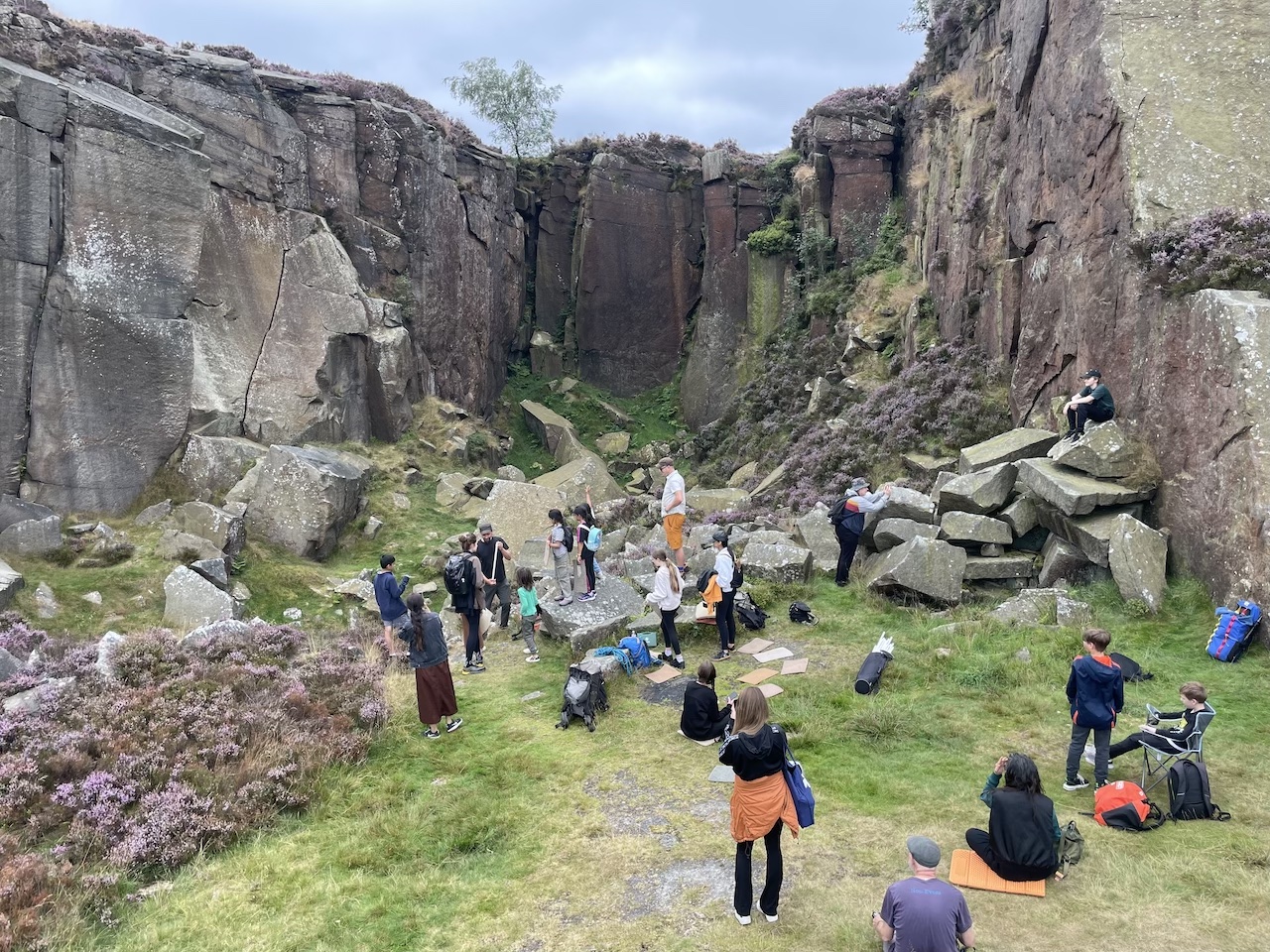 An outdoor music trip to the Peak District with Endeavour and Sufi Flute player Jan Hendrickse. We took 12 kids out for the whole day to make flutes in Burbage Qaurry in Fox House in August 2024.